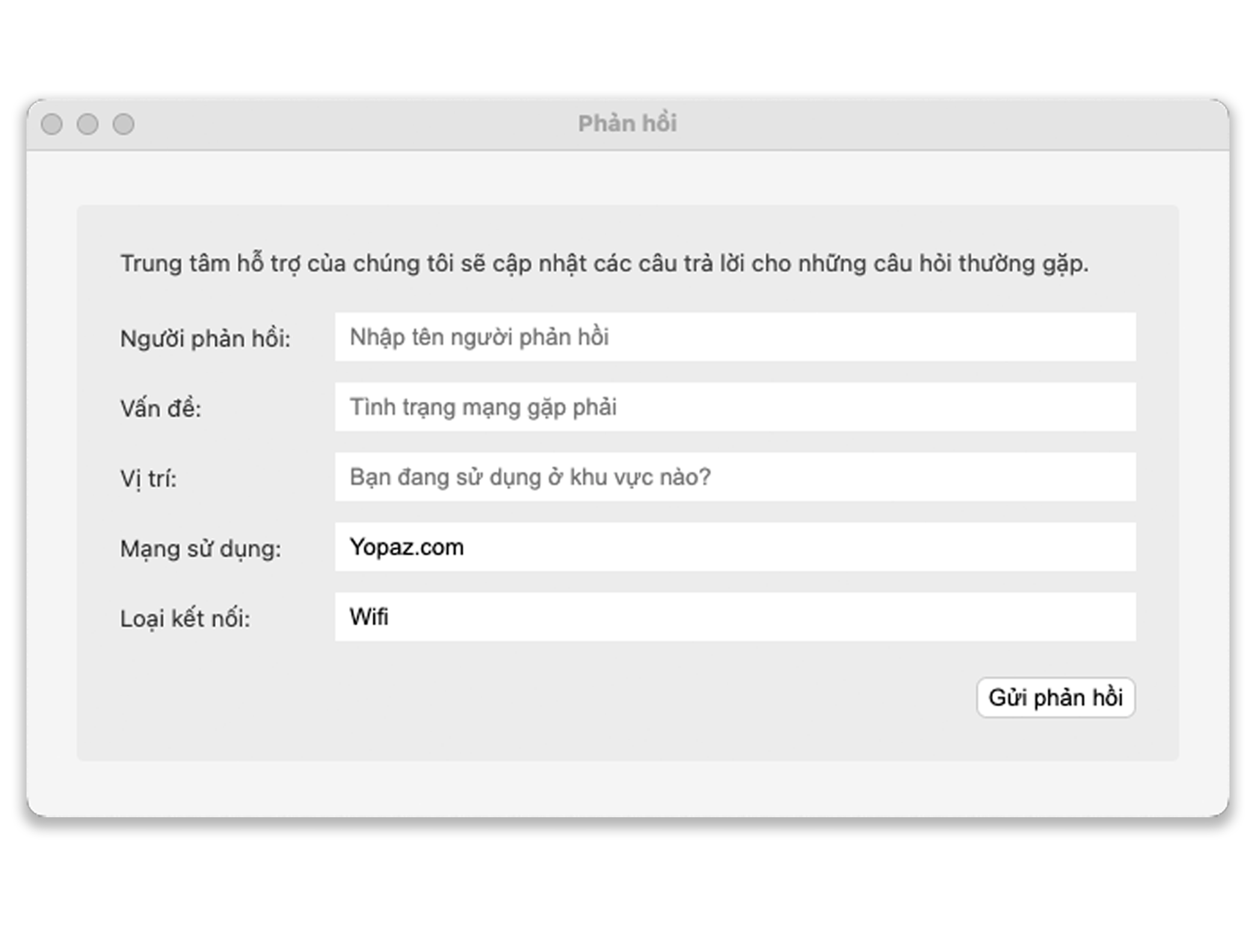 Gửi nhanh thông tin sự cố mạng của bạn đến đội ngũ kỹ thuật, giúp phát hiện và xử lý lỗi kịp thời, đảm bảo ổn định kết nối.